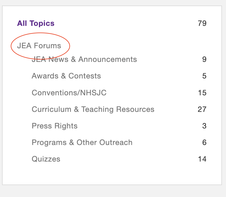 Once you’re in the JEA Forum, you can see the Topics (forums) on the right.