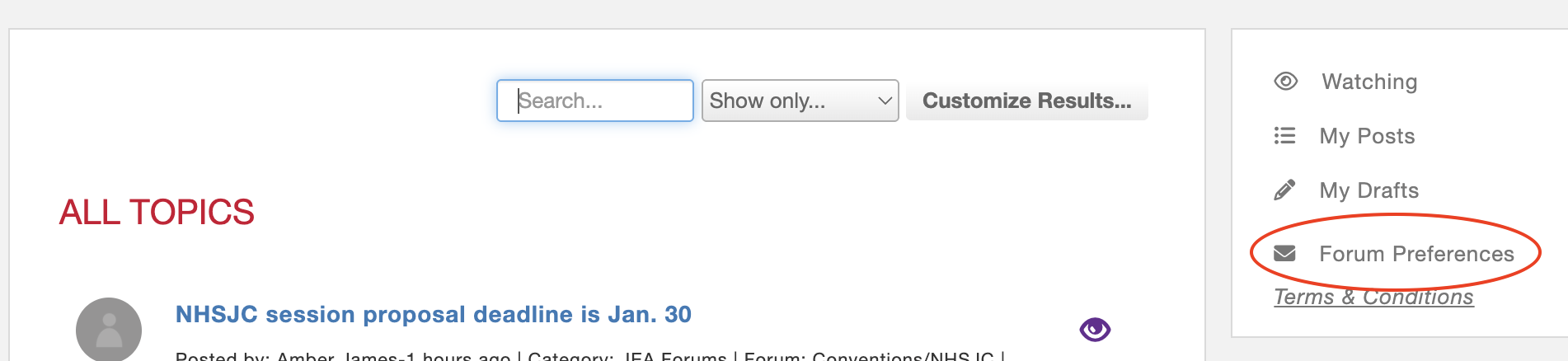 - In the Forum, click "Forum Preferences" in the right-hand column.
