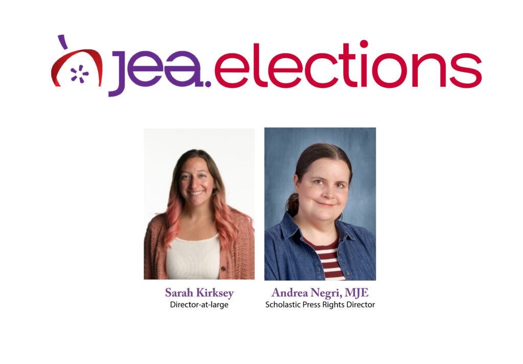 Recent News AllAwardsBoardConventionNewsThe Latest Awards Faust named 2025 H.L. Hall National Yearbook Adviser of the Year Convention Minutes for November 14, 2025 JEA general membership meeting Together, let’s inspire the storytellers of tomorrow. Board Minutes for November 13, 2025 board of directors meeting Board Board of director candidates share statements for 2026 JEA election Awards 123 superior rankings awarded, 684 students recognized in fall 2025 NSMC Awards duPont Manual captures sixth National Journalism Quiz Bowl win in Nashville Members Only Fall 2025 semiannual report Convention Agenda for November 14, 2025 JEA general membership meeting Board Agenda for November 13, 2025 board of directors meeting Awards Slade’s poster design to represent Scholastic Journalism Week 2026 Awards Six advisers recognized in fall 2025 Adviser Photography Contest 1 2 3 … 75 Next » Load More